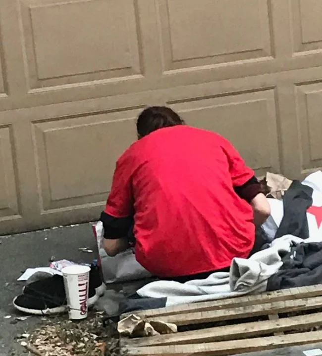 The next one was sitting with his back toward me and would not answer. I could see smoke and saw aluminum foil everywhere. He finally...after telling him to leave got his shoes back on and stood and and quickly walked away, Stumbling down the alley leaving a trail of small sheets of foil... Minutes later another...this one very aggressive. He was picking up aluminum foil and rigs looking to see if anyone left any dope.