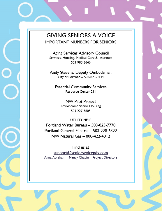 Gatekeeper Program - 503-987-3646 Seniors and disabled at risk